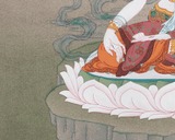 The Tibetan Buddhism White Tara Artwork, painstakingly hand-painted on a canvas of pure cotton, stands as a testament to both artistic devotion and spiritual significance. What distinguishes this artwork is the meticulous use of natural stone colors that infuse it with earthy authenticity, complemented by the ethereal glow of genuine 24K gold accents. These elements converge to create a visual masterpiece that not only delights the senses but also resonates with a profound spiritual depth. This masterpiece doesn't merely adorn a space; it serves as an invitation to delve into the divine realm of White Tara, the embodiment of compassion and serenity in Tibetan Buddhism. The intricate brushwork and harmonious color palette craft an ambiance of stillness, making it a cherished addition to any spiritual or meditative setting. This artwork is a tangible link to the rich tapestry of Tibetan Buddhism, inviting us to embrace its wisdom, grace, and enlightenment, while serving as a radiant beacon of serenity and spiritual aspiration.