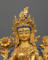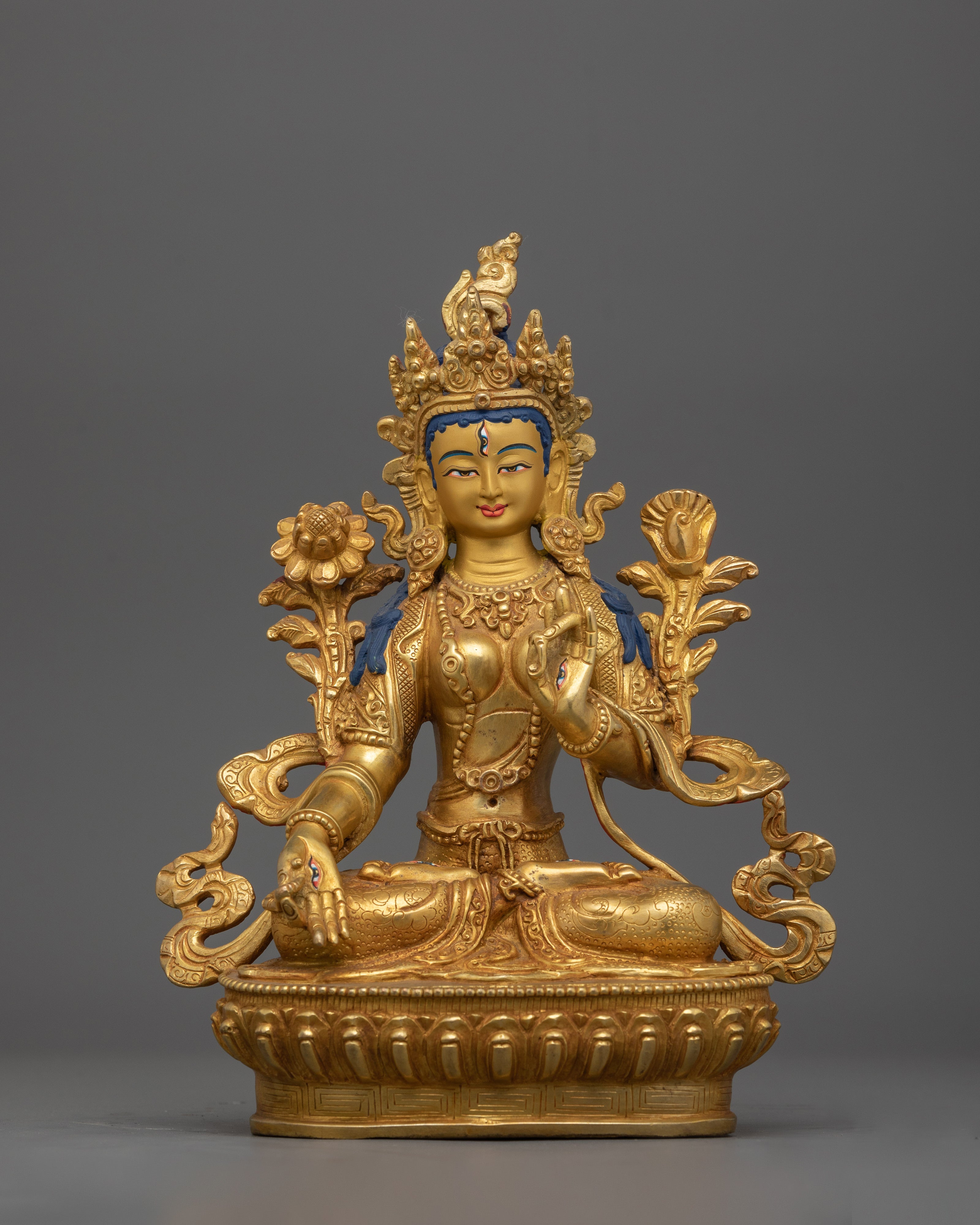 Handcrafted 24K Gold Gilded White Tara Goddess Buddhist Statue for Protection and Purification
