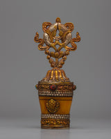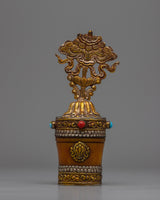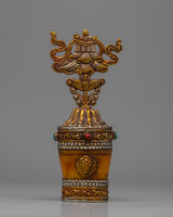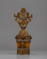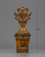This excellent Tibetan Buddhist Auspicious Symbol Set, carefully created with great attention to detail, is an incredible appearance of sacred symbols in Tibetan Buddhism. Every piece in the set has an amber stamp design and is handmade from white metal that has been polished in Gold and plated in silver to give it an opulent and classic look. With dimensions of 19 cm in height and 8.5 cm in width, each component weighs 0.364 kg, and the set as a whole weighs a solid 2.69 kg, making it both strong and aesthetically pleasing.