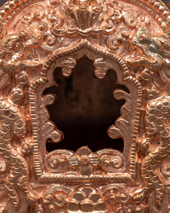 Tibetan Buddhist Copper Ghau Box | Shrine Amulet Box with Dragon Motif