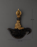 This Kartika knife is skillfully crafted from brass and iron, combining traditional Tibetan artistry and craftsmanship. The brass handle complements the iron blade, creating a stunning contrast that evokes the conventional Tibetan craftsmanship. This ceremonial knife is ideal for meditation altars, spiritual ceremonies, or as a decorative piece that celebrates Buddhist heritage. It adds sacred energy and attention to your spiritual practice. Owning this Kartika knife connects you to decades of Himalayan ritual history and is a powerful sign of clarity and protection.