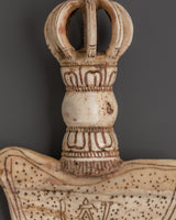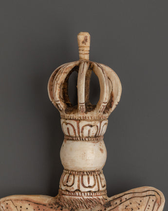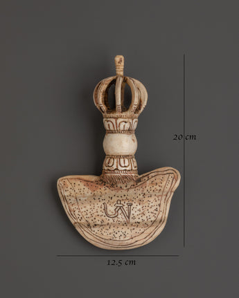 This handcrafted Yak Bone Kartika Knife is a distinctive and powerful ritual tool deeply rooted in Tibetan Buddhism. Symbolizing protection, transformation, and spiritual awakening, the Kartika plays a vital role in tantric practices. Measuring 20 cm in height and 12.5 cm in width, it is expertly crafted from authentic yak bone, ensuring andspiritual significance. Whether used in meditation, prayer, or as a striking decorative piece, this Kartika knife serves as a potent reminder of your spiritual journey and inner strength. Its unique craftsmanship and sacred symbolism make it an essential addition to any collection seeking to embrace Tibetan tradition and elevate spiritual practice.