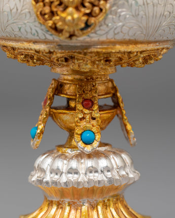 Tibetan Butter Lamp for Light Offering | Gold Silver Plated Altar Light