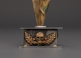 Discover the profound spiritual power of this Tibetan Ceremonial Copper Phurba, a sacred ritual dagger expertly fashioned for deep meditation and tantric protection. Standing 23.5cm tall and 7cm wide, this phurba features a copper body adorned with delicate gold plating and reinforced with iron, combining endurance with exquisite craftsmanship. This ritual tool represents the annihilation of negative energies and spiritual obstructions, making it ideal for both Tibetan Buddhist practitioners and collectors of authentic Himalayan spiritual relics.