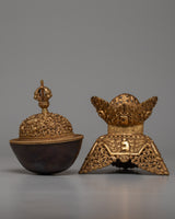The Tibetan Copper Kapala Set emanates a sense of reverence and sanctity whether it is utilized for ornamental purposes, in ceremonial rites, or during meditation sessions. Allow it to serve as a reminder of the transient nature of life and the eternal essence of the soul, leading you on a journey of self-awareness and inward development.