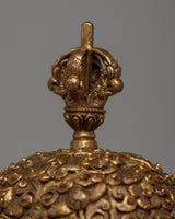Take a trip through spiritual mysticism with our Tibetan Copper Kapala Set, which is a reminder of ancient customs and holy ceremonies. Two 0.74kg kapalas, each handcrafted on a copper body and embellished with the grandeur of 24k gold electroplating, make up this pair.