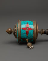 Tibetan Coral Mantra Wheel | Handheld Copper Prayer Wheel