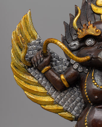 The Garuda are considered to be huge raptors in Buddhism. Suparna, which means "well-winged, having good wings," is another name for them. They are similar to the Nagas in that they exhibit traits of both animal and celestial entities, making them one of the lower devas. When the Garudas want to interact with mankind, at least some of their rulers and cities can magically transform into human shapes.