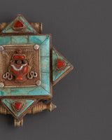 The Tibetan Ghau Box Locket Pendant is a beautifully crafted spiritual accessory, measuring 6cm in height and 5.5cm in width. Made from silver and gold-plated, this pendant is adorned with vibrant turquoise and coral stones, offering a powerful combination of beauty and spiritual significance. The Ghau Box design is traditionally used in Tibetan culture as a container for sacred mantras or relics, making this pendant not just a piece of jewelry, but also a potent tool for meditation and spiritual growth. Whether worn during rituals or as a daily spiritual reminder, this pendant adds meaning and beauty to your practice.