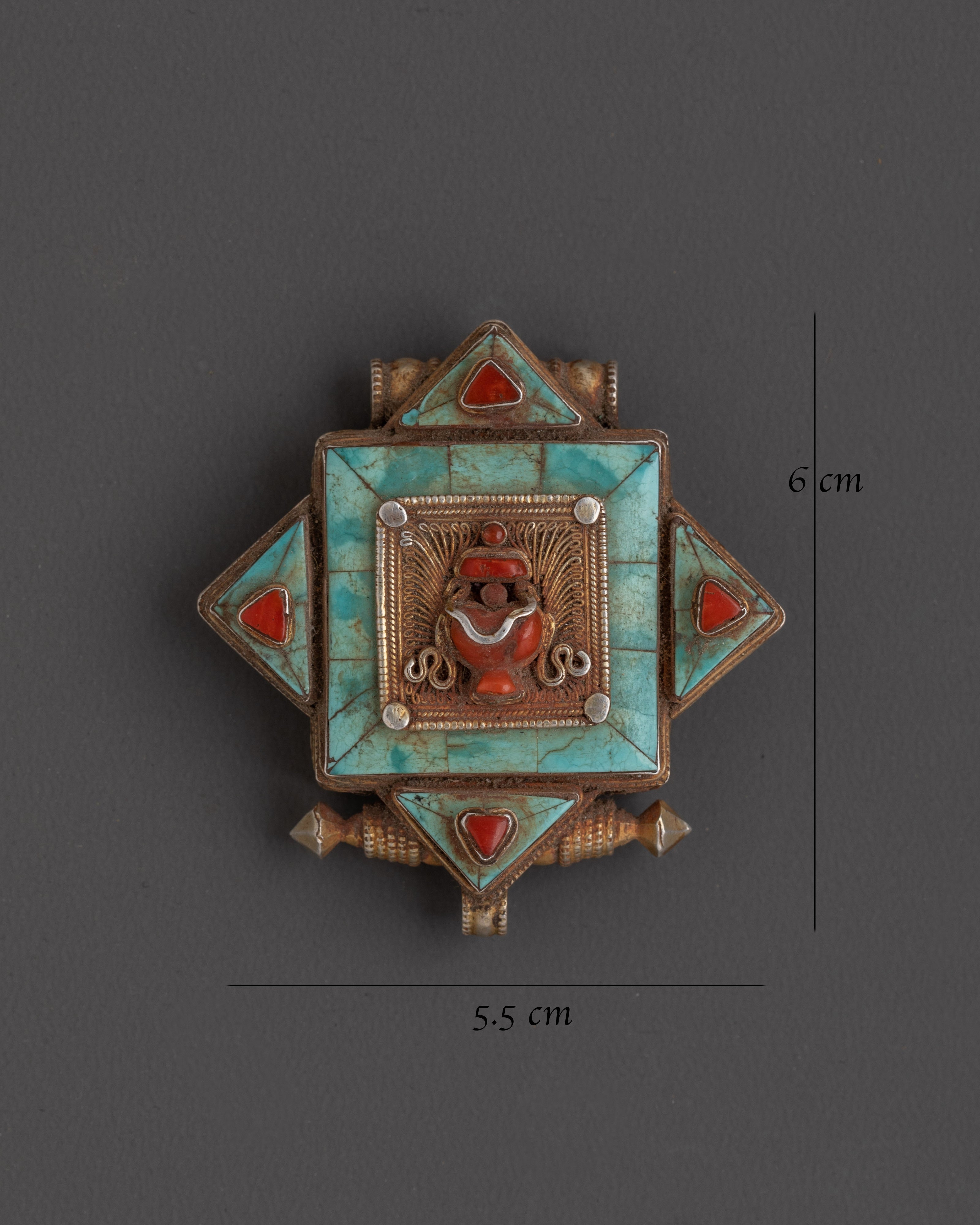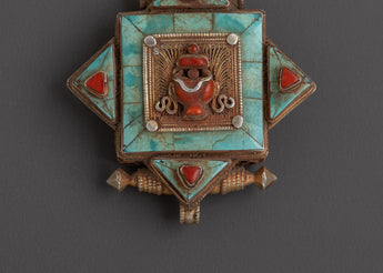 The silver and gold plated craftsmanship of the Tibetan Ghau Box Locket Pendant highlights its intricate design and durability. The addition of turquoise and coral stones further enhances the piece’s energetic properties, promoting healing, protection, and positive energy. Turquoise is known for its ability to aid in communication and bring balance, while coral is believed to have protective qualities and can help in grounding energy. Together, these stones make the Ghau Box Pendant not only a beautiful accessory but also a meaningful one, ideal for those who seek spiritual healing and balance.