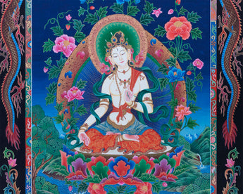It goes without saying that every detail of a painting has a symbolic meaning. Regardless of your religious affiliation, a thangka can help you on your path to enlightenment, whether you practice Buddhism or have other religious convictions. Thangkas are paintings that depict deities with various iconographic elements and symbolism that encourage meditation on the teachings of the god they depict. Any thangka is intended to aid in the removal of the film of ignorance, which is a significant barrier to the road to enlightenment. The Thangka is revered as a holy item. They promote positivity, spread Buddhism's teachings, bring about peace, harmony, and oneness, and dispel any negative energy that may be there.