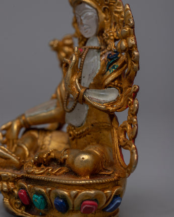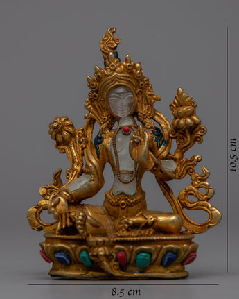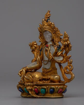 Tibetan Green Tara Statue | Crafted from Crystal Stone and Copper for Radiant Harmony