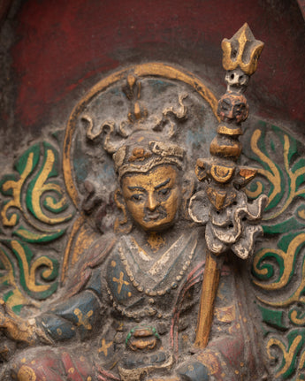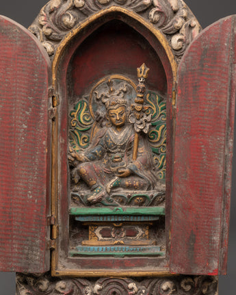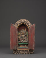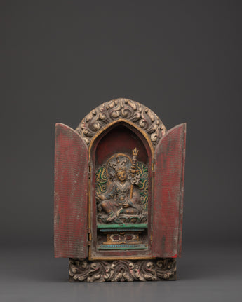 Tibetan Guru Rinpoche Shrine Box | Handcarved Wooden Altar Cabinet