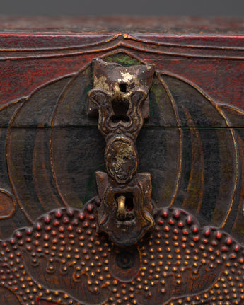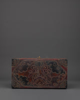 This ethnic Tibetan wooden holy item box, designed with both practicality and spiritual significance in mind, provides a safe and stylish way to store your priceless ritual items. Its exquisite workmanship and cultural significance combine traditional Himalayan beauty with proper functionality to create the perfect present or cherished heirloom. Authentic Tibetan elegance and grace can be added to your meditation, rituals, or home décor by adding this exquisitely hand-painted box to your spiritual collection.