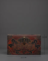 With this exquisite Tibetan Hand-Painted Sacred Object Box, painstakingly crafted from wood and embellished with vibrant acrylic colors, you can embody Tibet's spiritual legacy. Measuring 19cm in height, 33.5cm in width, and 17.5cm in side depth, this lightweight yet durable box weighs 1.41kg, providing ample space to store your sacred ritual items, prayer tools, or cherished spiritual keepsakes. It is a significant addition to your altar, meditation area, or spiritual sanctuary due to the elaborate, hand-painted ethnic designs that showcase genuine Tibetan craftsmanship. This box is ideal for individuals who value cultural heritage and seek to bring harmony and mindfulness into their sacred spaces.
