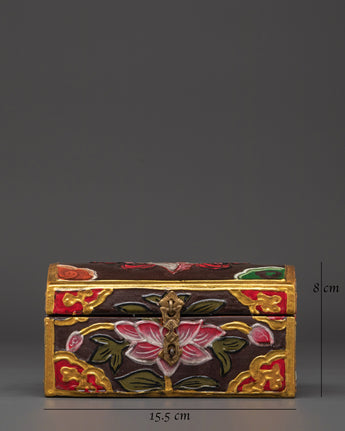Tibetan Hand-Painted Wooden Box | Ritual & Jewelry Storage Chest