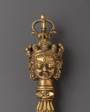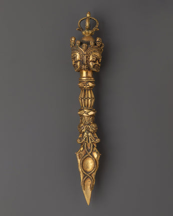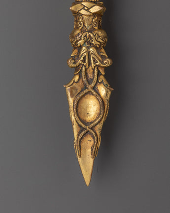 Tibetan Handcrafted Phurba Dagger | Gold-Plated Copper Ritual Dagger
