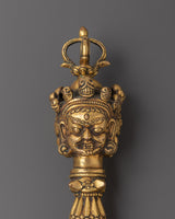 This ceremonial dagger, created by expert artisans, contains exquisite carvings of wrathful deities, serpents, and three-sided blades that reflect the transformation of negative energy into spiritual clarity. The intricate designs are not only symbolic but also represent the strength and compassion of Vajrakila, the deity responsible for eradicating spiritual impediments. The gold-plated finish heightens the ceremonial energy and visual attractiveness of this sacred artifact.