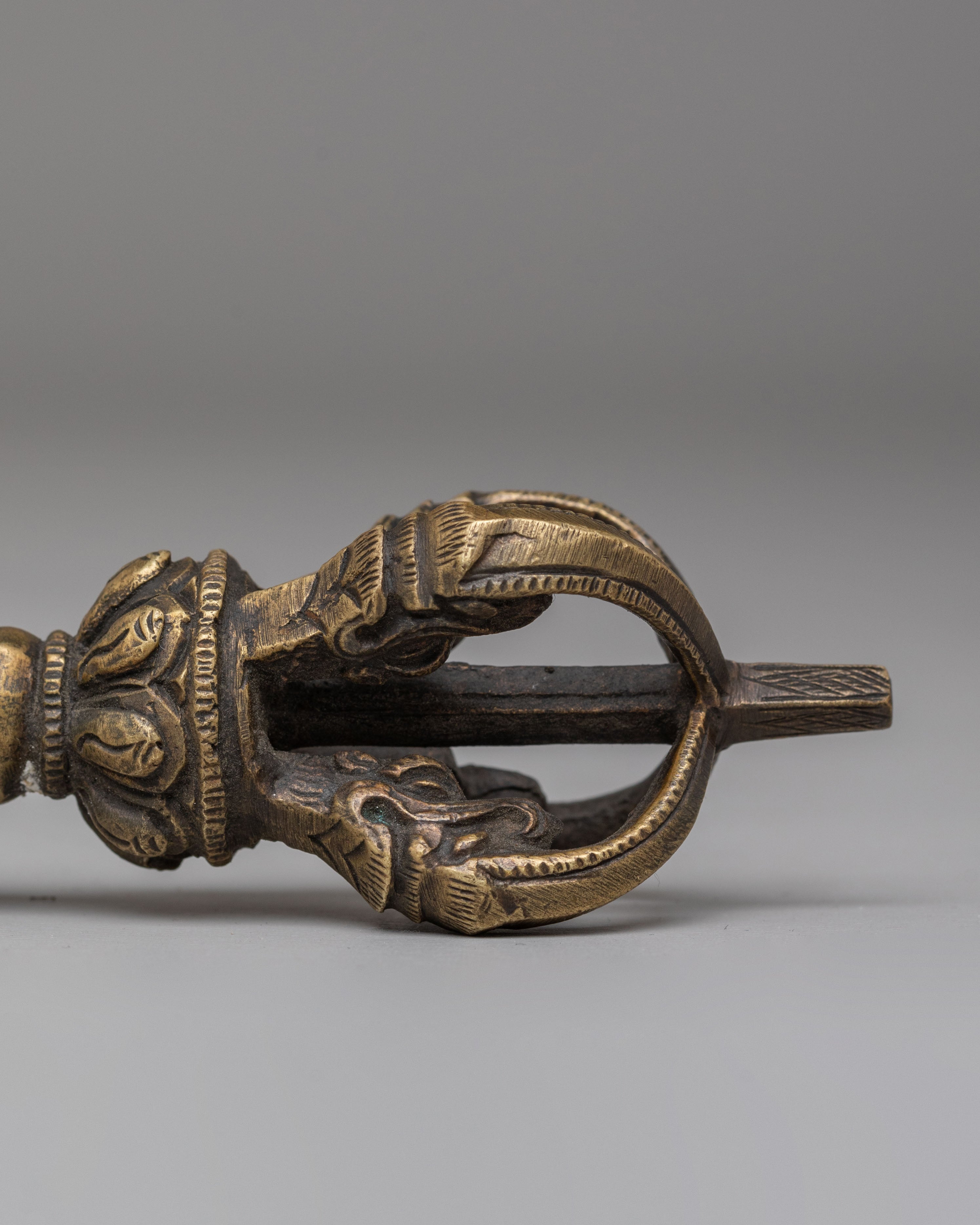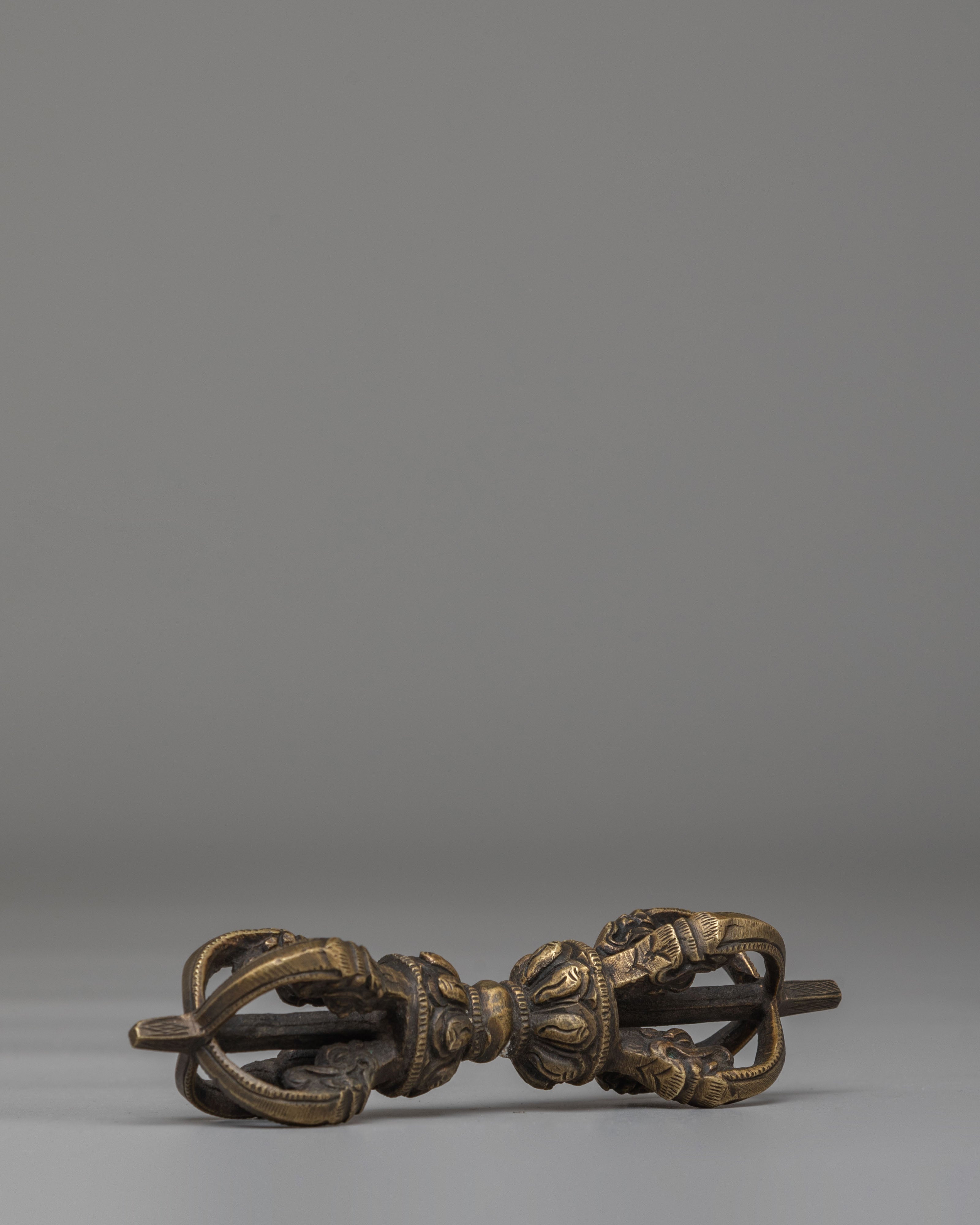 This handmade brass vajra features the traditional five-pronged design, representing the five elements: earth, water, fire, air, and ether. The vajra is also a symbol of the Buddha's indomitable wisdom, providing spiritual strength and clarity to the practitioner. Whether used in meditation, rituals, or as a symbolic offering, the vajra serves to invoke protection and spiritual energy, guiding the user toward enlightenment and inner peace. Its craftsmanship ensures a lasting, potent connection to the Buddhist teachings.