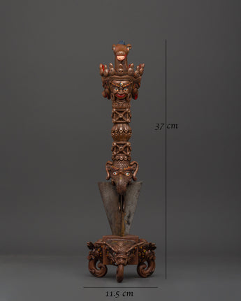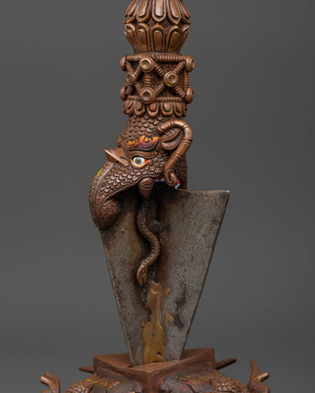This handmade Tibetan Phurba is not only a potent tool for energy work, but it also makes a striking addition to an altar. Its rich symbolism and fine craftsmanship make it a valuable addition to any meditation room, home altar, or collection of spiritual relics. Whether you want to improve your meditation practice or add a sacred touch to your home decor, this Buddhist sacred instrument adds both visual beauty and spiritual depth to any space. This phurba is ideal for individuals seeking spiritual protection, energy clearing, or ceremonial use in Tibetan traditions. It combines traditional workmanship with potent spiritual energy.