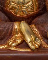 The sculptures are crafted with 24K gold gilding and a radiant glow that represents purity and divine energy. The gold and acrylic paints precisely emphasize the exquisite details, such as facial expressions and robes, portraying the richness of Tibetan creativity. The oxidized copper body has an ageless look that emphasizes the eternal nature of the teachings. The triple layers of gold gilding, along with deeply engraved carvings, create a stunning 3D impression, making the sculptures both physically appealing and spiritually meaningful, ideal for devotion, meditation, or exhibition in sacred spaces.