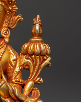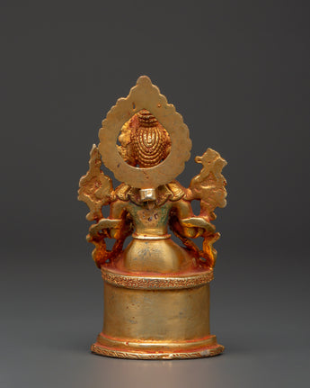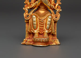 This Maitreya statue is expertly created from copper and embellished with gold plating, exemplifying the delicate creativity of Himalayan metalwork. The meticulous features, from the serene facial expression to the elegant lotus throne, exude spiritual tranquility and dharmic meaning. This Tibetan Maitreya figurine is ideal for practitioners, collectors, or as a thoughtful gift. It represents the essence of enlightenment and peace. Keywords such as future Buddha statue, gold-plated copper Maitreya, Buddhist altar décor, and Tibetan Buddha figurine make it easily accessible to those seeking spiritual art.