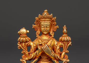 Tibetan Maitreya Buddha Figure | Gold-Plated Seated Statue