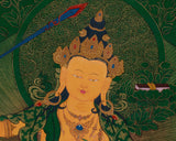 These deities are deliberately depicted together to form a comprehensive spiritual framework, providing practitioners an integrated support system for their spiritual journey. This configuration signifies the balance of inner clarity, moral discipline, physical well-being, and worldly support, essential pillars for spiritual growth. Displaying this thangka can inspire mindfulness, dispel ignorance, and invoke healing, guidance, and protection in secular and sacred spaces.
