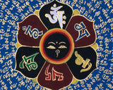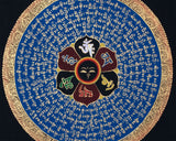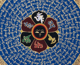 The Buddha Eyes Represent the Eyes of Wisdom.When one is aware of the true nature of Phenomenon one is able to seek the relative and ultimate truth.This leads one to state of Blissful Happiness in other words free from suffering.Mandala thangka painting is believed to bring internal peace and prosperity for oneself and family.Mandala is a geometric pattern of squares & concentric circles as a projection of the cosmos.The basic form of mandalas is square with four gates containing a circle with a center point.This Mandala is great for your home or office.This is also great for gifts or presents for every occasion .The painting is unframed and will ship rolled.Mantra is recited to Enhance ones level of Concentration which helps to Check your mental thoughts .Our thoughts and Actions leads to Good or Bad Karma.By Reciting Mantras you Gain Merits which helps you have a Joyful Life .