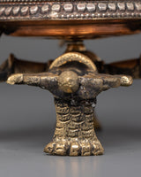 This Tibetan Mantra Spinner Wheel measures 23.5 cm in height and 11.5 cm in width, weighing 0.84 kg. The wheel, crafted from copper with a brass base, is beautifully embellished with Tibetan mantras intricately carved around its surface. The elaborate pattern incorporates holy symbols and traditions, bringing spiritual energy and peace into your space.