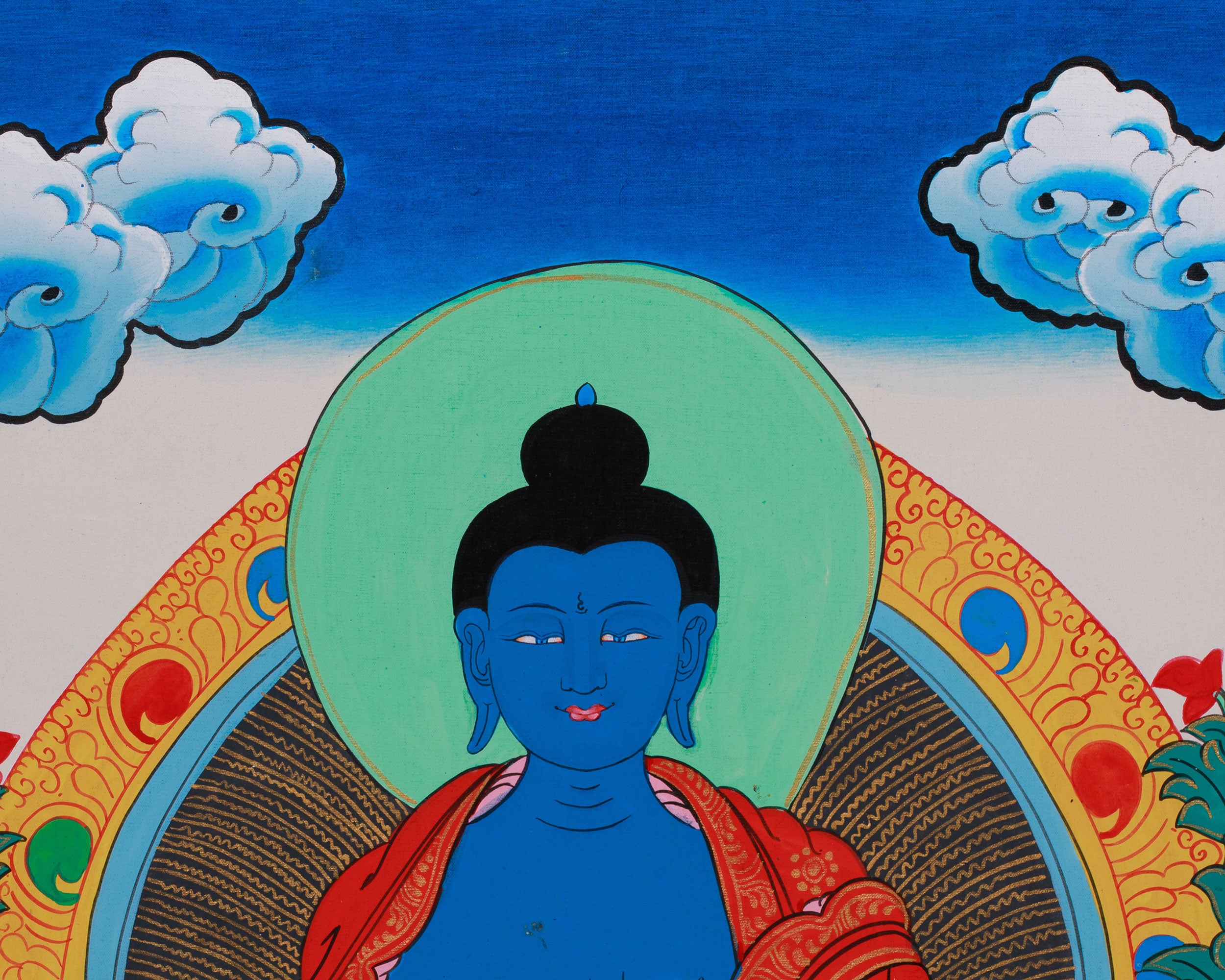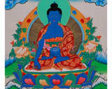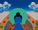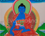 Original Tibetan Medicine Buddha Thangka | Healing Blue Deity of Vajrayana Tradition