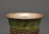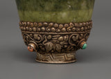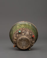 Handcrafted Tibetan Offering Bowl with Jade, Silver, Turquoise & Coral