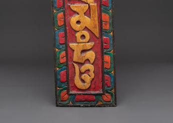 Tibetan Om Mani Padme Hum Wall Hanging | Sacred Wooden Mantra Art