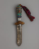 Tibetan Phurba Dagger with Crystal Blade | Sacred Ritual Artifact