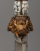 This Phurba, weighing 1.16kg, is an effective ritual implement and a stunning work of sacred art. Traditionally used to eliminate negativity and obstructions in Buddhist and Tantric practices, it is a powerful artifact for altars, meditation areas, or as a collector's piece. Whether you're looking for spiritual empowerment or a significant ornamental piece, this Phurba represents the rich tradition and symbolism of Tibetan rites.