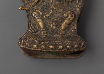 This handmade Tibetan Prayer Ghau Box is a wonderful way to embrace the holy tradition of Tibetan spirituality. This exquisite piece, which weighs 0.37 kg and has dimensions of 14 cm in height by 9 cm in width, is crafted from brass that has been antique-finished. This spiritual amulet box, which has been used as a traveling shrine for centuries, is a must-have for devoted practitioners and collectors of Himalayan ritual artifacts since it can house relics, mantras, or sacred images.