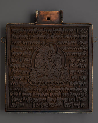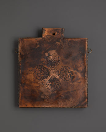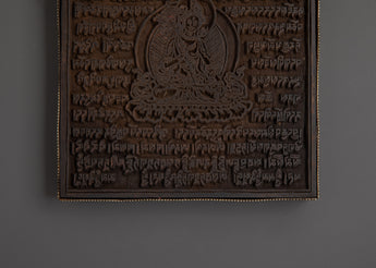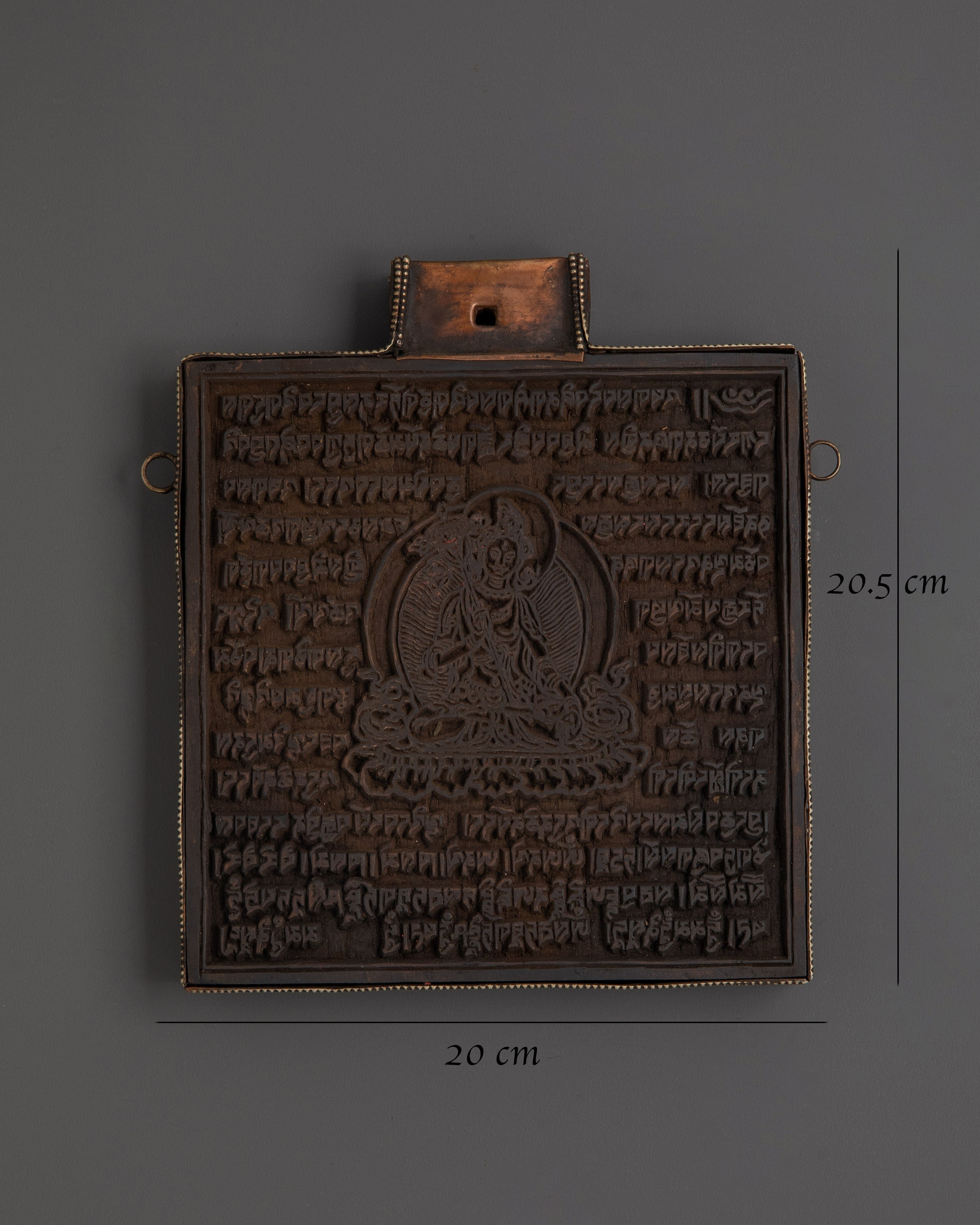 The Tibetan Prayer Stamp is a beautifully handcrafted spiritual tool that is designed explicitly for Tibetan rituals, meditation, and prayer ceremonies. This artifact, measuring 20.5cm in height and 20cm in breadth, is made of wood and copper and features an elaborate design that represents the sacredness of Tibetan Buddhist traditions. Whether you're meditating, performing rituals, or seeking blessings, this Tibetan Prayer Stamp boosts the spiritual energy of your practice by connecting you directly to the divine.