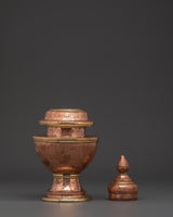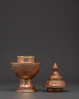 Tibetan Rice Offering Pot | Copper Ritual Vessel with Lid for Altar and Puja
