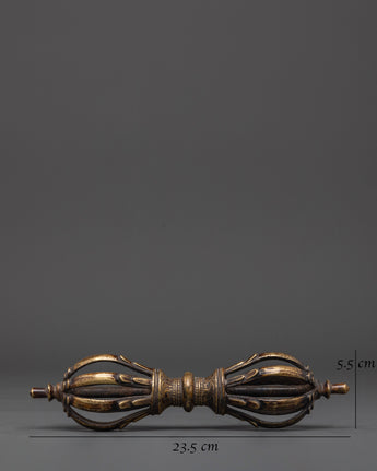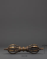This brass Vajra, crafted with precise craftsmanship, emanates spiritual energy, making it a powerful tool for both experienced practitioners and those new to the Buddhist path. Its intricate workmanship and symbolic depiction strike an ideal mix between artistic beauty and spiritual meaning. Whether used for daily meditation or exhibited in a spiritual location, it evokes the heavenly forces of serenity and protection.