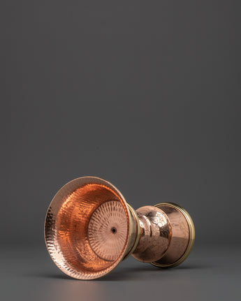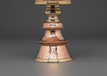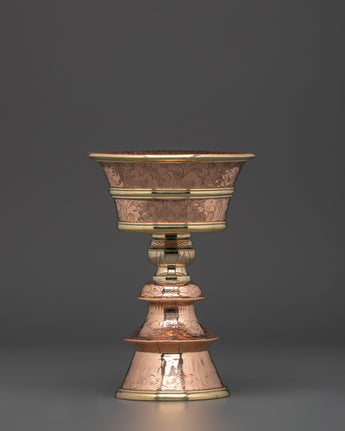 Meticulously handcrafted by skilled artisans using copper and brass, this lamp offers elegance. Its careful design, featuring an inner depth of 6 cm and a stable base measuring 9 cm, ensures safety and ease of use. Ideal for spiritual rituals, yoga practices, or as a thoughtful gift, this butter lamp brings a calming presence and authentic Himalayan craftsmanship into your daily life.