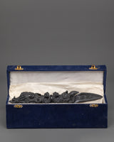 This Tibetan Ritual Phurba with Box is a sacred ritual dagger carved from revered saligram stone, a material honored in Himalayan tradition for its spiritual purity and energy. The phurba, also known as a vajrakilaya dagger, is an important Tibetan Buddhist ritual implement used to subdue negative influences, dissolve spiritual obstacles, and channel blessings. Its paired storage box ensures the dagger is preserved with the respect and care it deserves, making it both a powerful ceremonial tool and a distinctive cultural artifact.