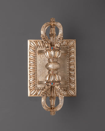 The Vajra, also called the Dorje, is a highly respected ritual object in Tibetan Buddhism. It represents the unbreakable truth, the masculine energy, and the powerful union of compassion and wisdom—the essence of all enlightened deeds. Displayed on its included stand, the Vajra serves not only as a tool for transforming energy but also as a captivating centerpiece that enhances concentration, focus, and spiritual clarity. Its silver-plated finish accentuates detailed craftsmanship rooted in ancient tradition, making it perfect for both ceremonial use and as a meaningful addition to sacred décor.