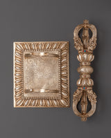 Elevate your spiritual practice with this exquisite Tibetan Ritual Vajra with Stand, a powerful symbol of wisdom, compassion, and indestructible spiritual energy deeply rooted in Tibetan Buddhism. Handcrafted from copper and finished with elegant silver plating, this Vajra measures 18.5 cm in height, 32.5 cm in width, with an 18 cm side width, and weighs a substantial 5.13 kg, embodying a commanding spiritual presence. Its custom-fitted stand ensures stability and offers a regal display, making it an ideal centerpiece for any altar, shrine, or meditation space. This sacred tool not only enhances the aesthetic of your sacred environment but also serves as a potent reminder of the unity of wisdom and compassion, supporting deeper meditation and spiritual growth.