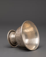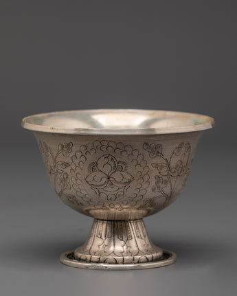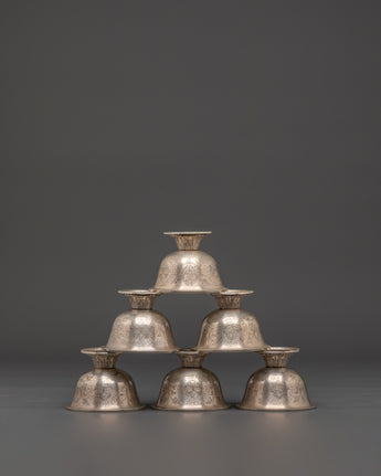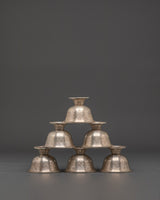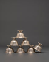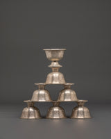 Tibetan Ritual Water Bowl Set | Silver-Plated Copper Offering Bowls