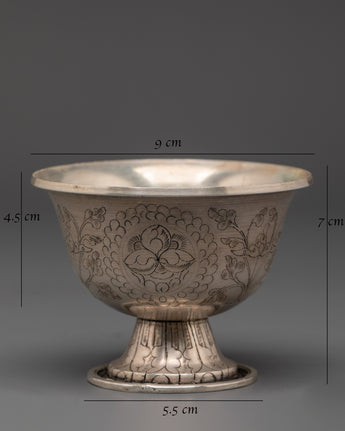 Elevate your spiritual practice with this magnificent Tibetan Ritual Water Bowl Set, which is skillfully crafted from copper and silver-plated for a beautiful finish. Each bowl is 7cm tall, 9cm in diameter, and has an interior depth of 4.5cm, making it ideal for traditional water offerings during puja, meditation, and holy ceremonies.