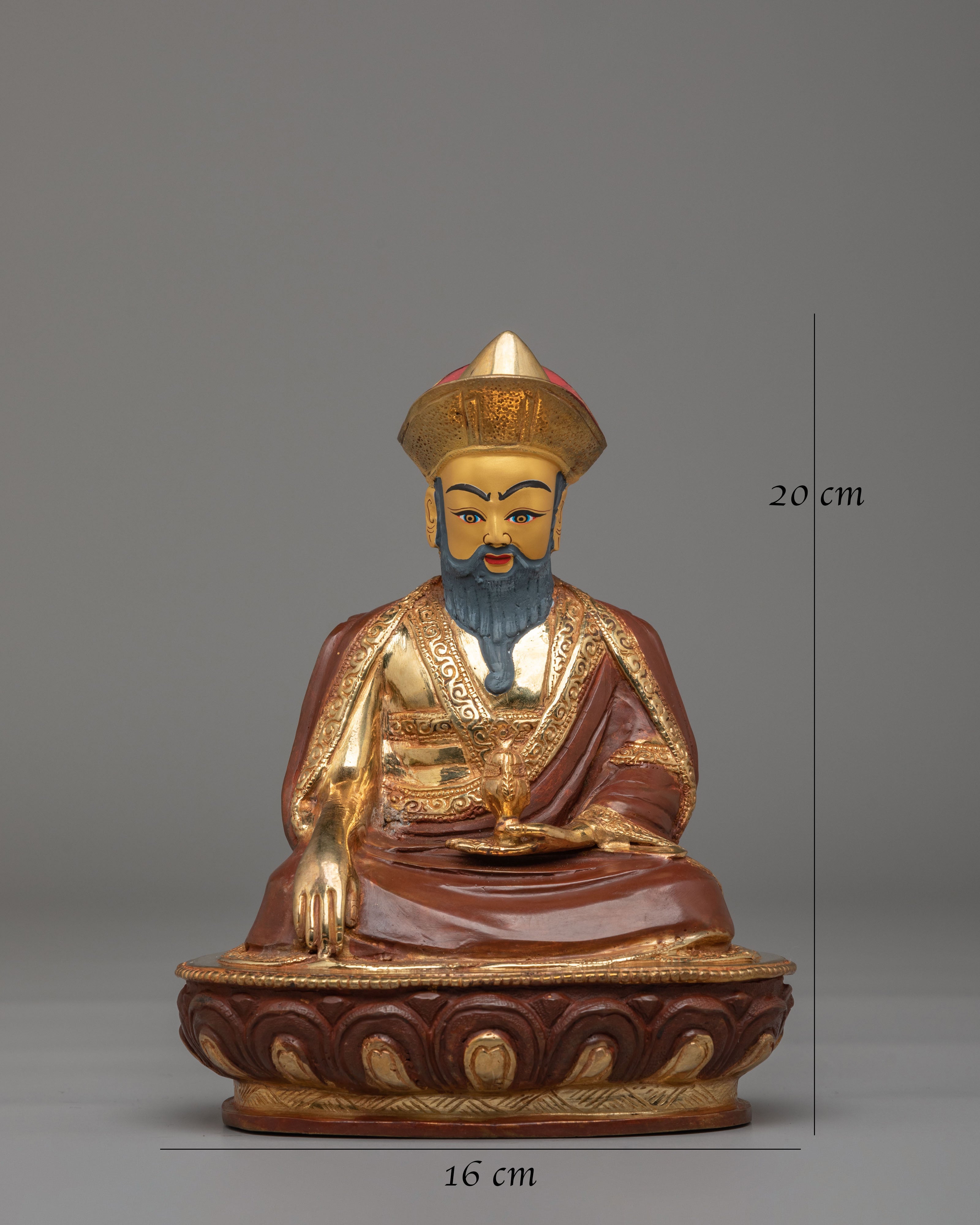 The Handcrafted Tibetan Sacred Guru Shapdum Statue is a sacred symbol of wisdom, protection, and divine blessings. Standing at 20 cm in height and 16 cm in width, and weighing 1.79 kg, this statue is crafted with a copper body, finished with 24K gold plating, and enhanced with vibrant acrylic color. It serves as a powerful addition to any altar, meditation room, or spiritual space, bringing peace, harmony, and sacred energy into your environment.