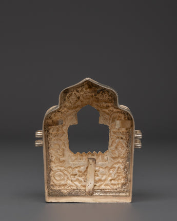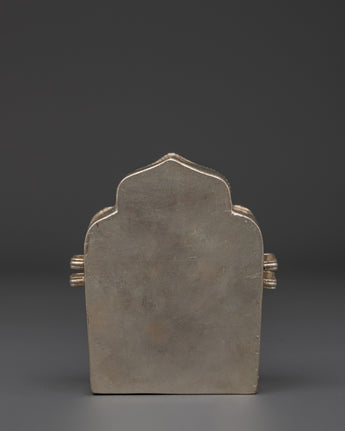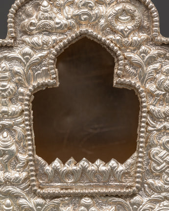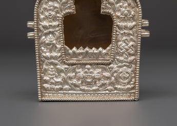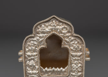 Experience the refined elegance and spiritual significance of the handcrafted Tibetan Sacred Ritual Ghau Box. Made from copper with a silver-plated finish, this intricately crafted box traditionally holds sacred relics central to Tibetan rituals. Measuring 7.5cm in height and 7cm in width, it offers both decorative charm and a meaningful connection to Tibetan cultural heritage.Meticulously crafted, this Ghau Box is a remarkable addition to your spiritual journey. Its detailed silver plating enhances the copper base, symbolizing purity. Perfect for holding sacred relics, prayers, or spiritual symbols, it embodies the rich spiritual heritage of Tibetan Buddhism. More than just a holy container, this box is a lasting testament to traditional Tibetan craftsmanship.