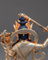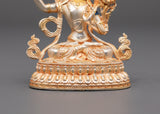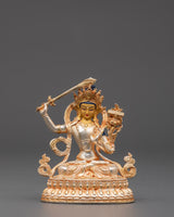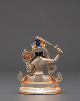 The excellent creativity associated with Tibetan Buddhist art is highlighted by the features of this statue, which were machine-made with precision. The gold and silver plating adds to its religious presence, giving it a finish that makes it suitable for personal altars as well as spiritual settings. The symbolic design represents clarity of intellect, enlightenment, and the desire for higher understanding, all of which are profoundly rooted in Buddhist philosophy. This Tibetan sculpture of Manjushri serves as both a powerful meditation companion and a meaningful piece of spiritual décor.