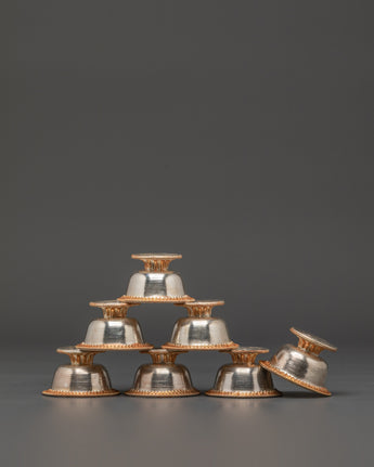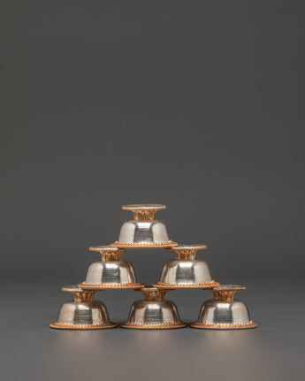Tibetan Seven Offering Bowl Set | Copper Ritual Bowls with Silver & Gold Plating