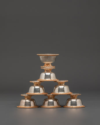 Tibetan Seven Offering Bowl Set for Altar Water Offerings and Spiritual Practice